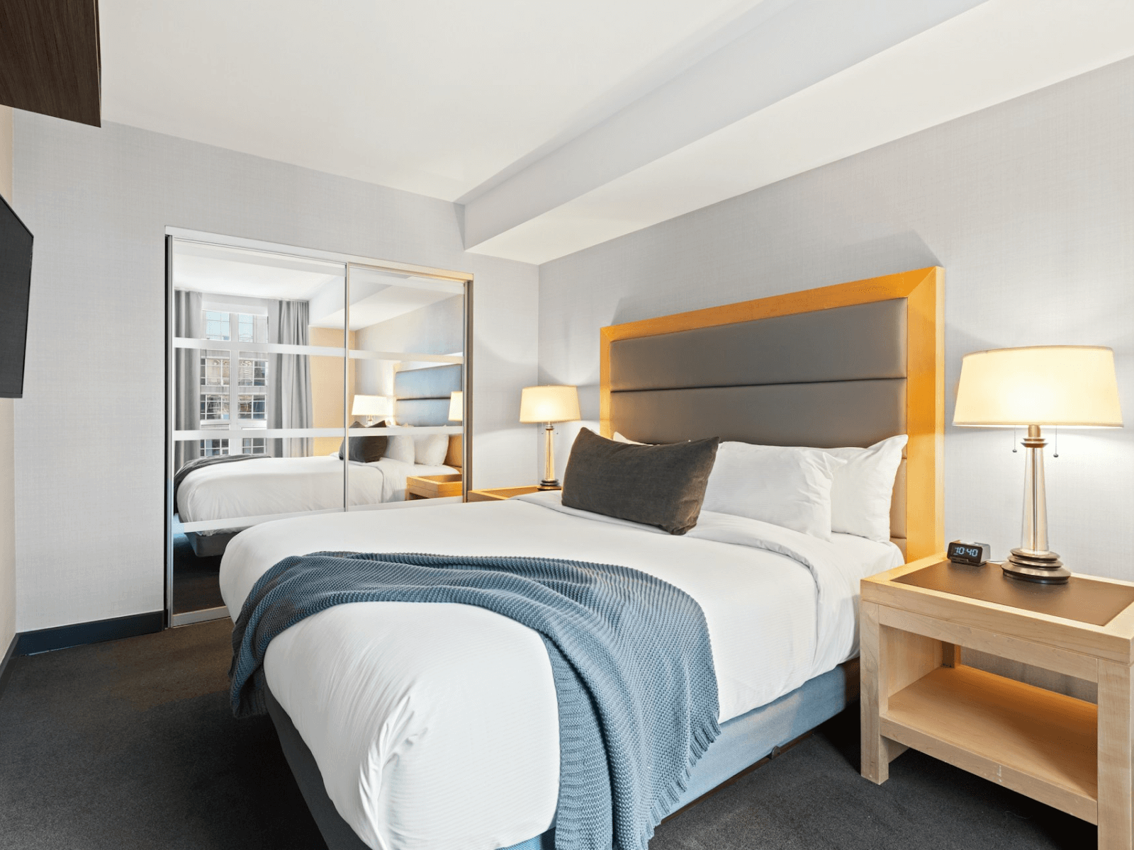 Your comfort is our top priority when designing our rooms and suites, which include soft beds, fine linens, and contemporary conveniences like flat-screen TVs, fast internet access, and mini-fridges. Also, each room features a sizeable workstation, making it the perfect accommodation for business traveler's who need to remain connected and productive.