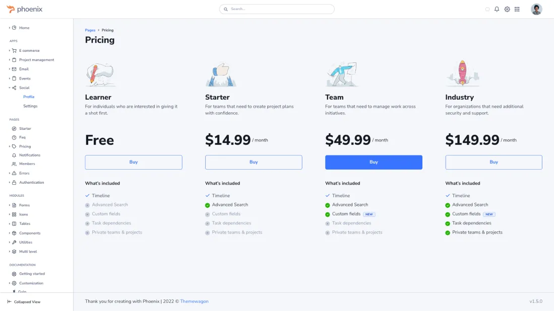 Many of our customers are using Phoenix with Django. Using Phoenix is like using Bootstrap with Django, just with some extra features.For a starter, you need to take all the CSS and JS files from Phoenix's "public/assets" folder to your project and link them to your view files. You can find all the required scripts and styles on the source of the starter page. It is also possible to compile the SCSS and use the ES6 JavaScript partial files with Django using Phoenix's built-in gulp based workflow.