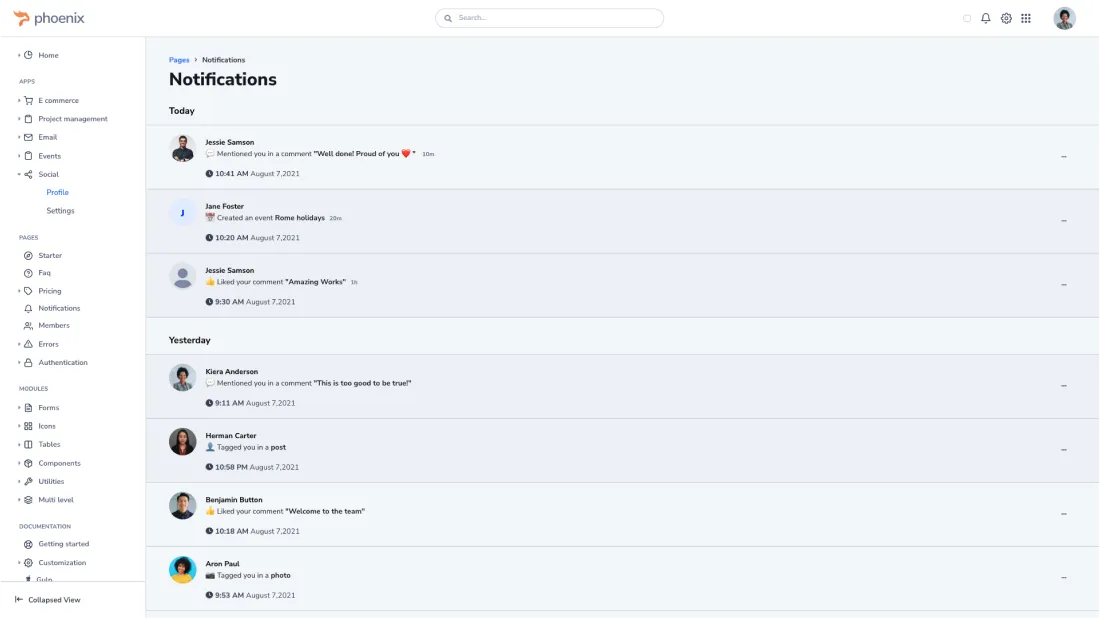 Many of our customers are using Phoenix with Laravel. Using Phoenix is like using Bootstrap with Laravel, just with some extra features.For a starter, you need to take all the CSS and JS files from Phoenix's "public/assets" folder to your project and link them to your view files. You can find all the required scripts and styles on the source of the starter page. It is also possible to compile the SCSS and use the ES6 JavaScript partial files with Laravel using Phoenix's built-in gulp based workflow.